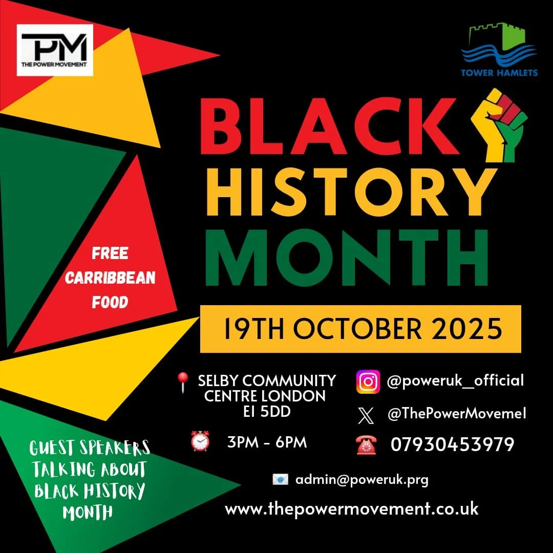 The Power Movement is proud to host a special Black History Month celebration on 19th October 2025, supported by Tower Hamlets. This inspiring community event will bring people together to honour Black heritage, culture, and achievements.